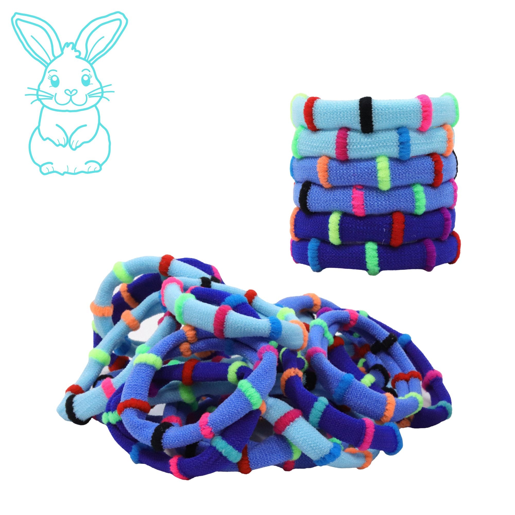 Blue and Rainbow Seamless Hair Elastics - 100 Pack