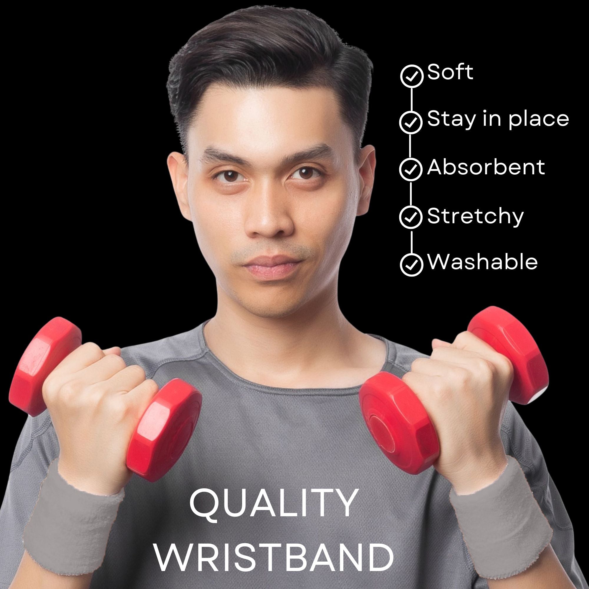 COMFORTABLE: These workout sweatband wristbands are 3 x 3 x 0.5 inches and are made up of 70% Polyester Cotton/12% Spandex/18% Latex. The moisture wicking, breathable, lightweight and soft fabric gives you a perfect fit.