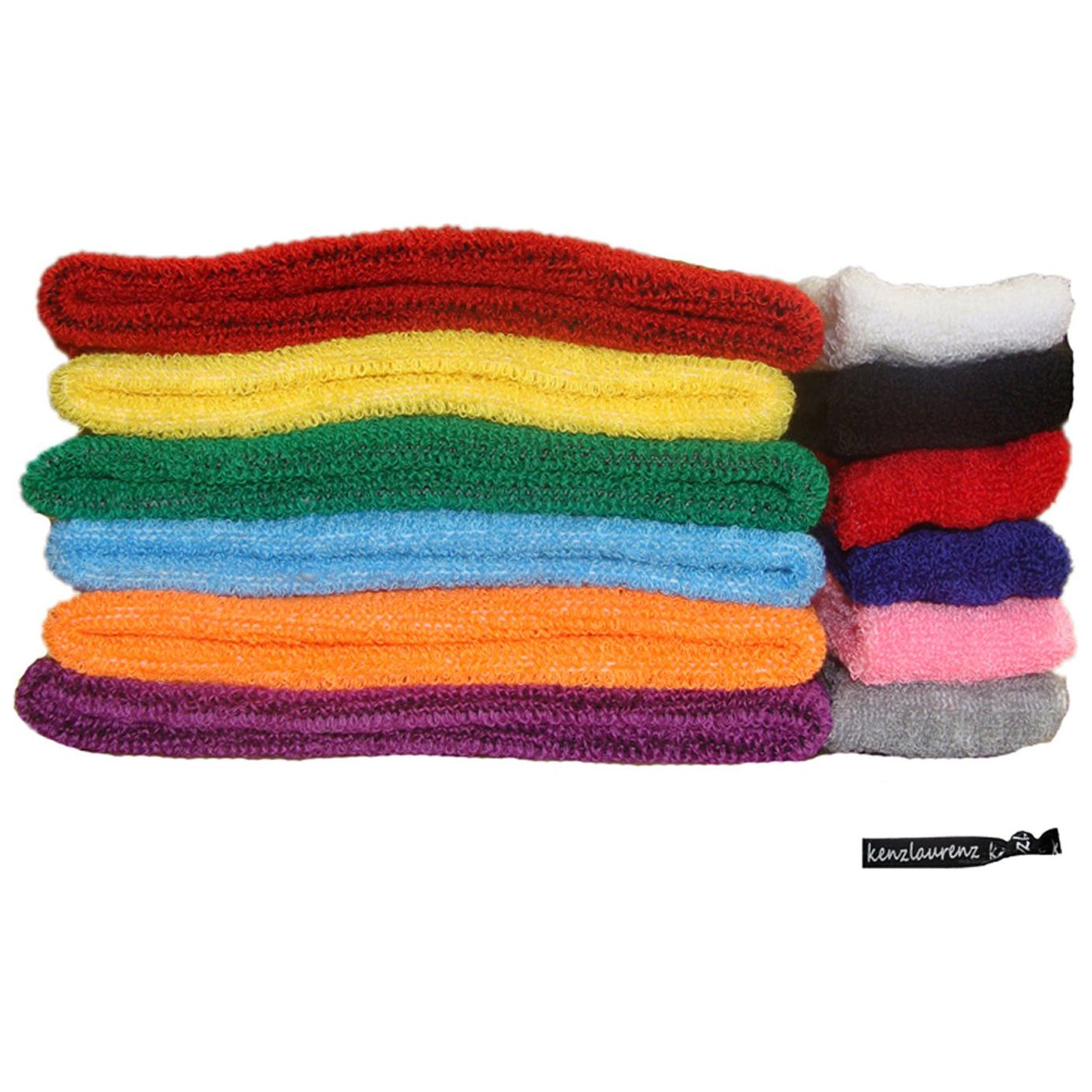 - COMFORTABLE: Our Sweatband Headbands are 6 x 2 inches and are made up of 70% Polyester Cotton/12% Spandex/18% Latex. The comfortable, soft, and stretchy fabric will keep you warm in the winter and cool in the summer. These sport headbands will stop the sweat from running down your forehead and into your eyes, so you can focus and finish strong! Grab yourself the best sweat absorbing headband and you will want one in every color.